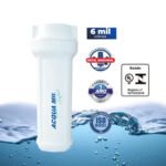 “Filtro para ponto de uso. Proporciona a retirada de partículas a partir de 5 micras com remoção de cloro da água, tornando a água da rede limpa e pura para o consumo. Vida útil de 6000 litros.