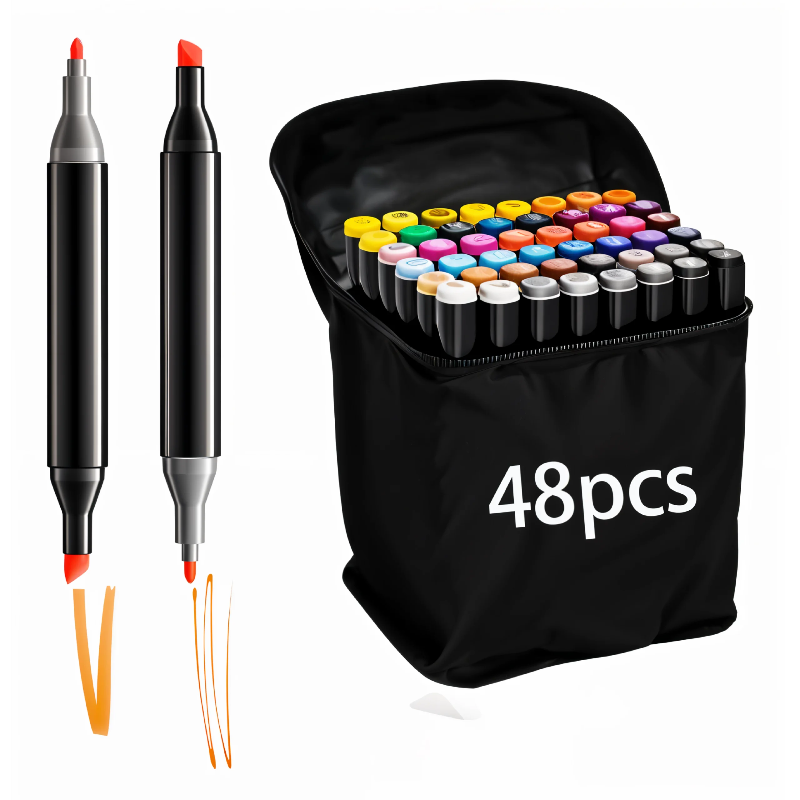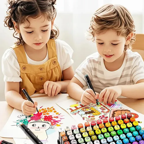 Descubra a liberdade criativa com o Conjunto de Canetas Marcador Permanente Ponta Dupla – 48 Cores e leve suas obras de arte a um novo nível!
